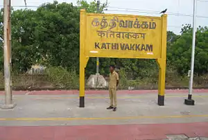 ![]() A passenger waits for a local train at Kathivakkam Railway Station | |