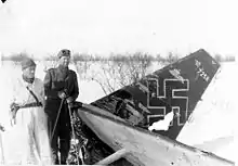 Norwegian soldiers with the wreck of a German aircraft at Kautokeino Airport in spring 1945