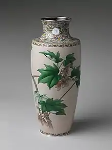 Vase using moriage shippō (盛上七宝) technique to raise the plum blossom and branches (c. 1905)[7]