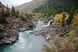 ![]() Kawarau River with Roaring Meg hydro station | |