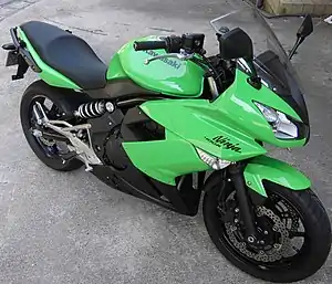The Kawasaki Ninja 400R is a motorcycle in the Ninja series from the Japanese manufacturer Kawasaki. It was announced for the 2011 model year, and is sold in Canada and New Zealand. No plans currently exist to bring the bike to the UK market.[3] Instead, a new Ninja 400 (2018) is introduced for the global market.[4] While the new Ninja 400 is similar in many ways, it is mostly a different bike. The Ninja 400R is based on the Ninja 650R.[2][5] There is also a naked version of the 400R called the ER-4n introduced in 2011 only sold in Japan.[5]
