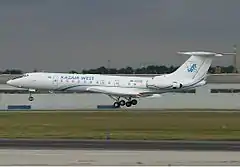 Kazair West was an airline based in Atyrau, Kazakhstan, which operated domestic corporate charter flights out of Atyrau Airport, as well as aviation project management and medical evacuation services.[1]