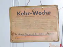 Sign "Kehr-Woche". The text says: "This week it is your turn"