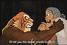 In the 2009 Meitei language animation film Keibu Keioiba (Tiger Head), the character of Keibu-Kei-Oiba was uniquely designed to a humanoid tiger, which had to speak dialogues in human voices. The facial structure of the character was twisted out of the normal shape of a real tiger to a little bit extend. It was done so as to bring adjustment to the human voice and the speaking actions during digitalization.[11] Artist Bhumenjoy faced great challenges in making the visual character of Keibu Kei-Oiba, as the character is about the combination of a human and a beast. Various faded colours were used by the drawing team to adapt to the story.[12]