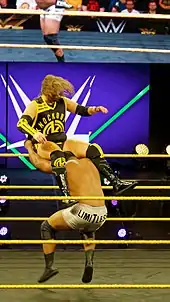 Prior to officially signing with WWE, Lee received a tryout in 2008, although this did not result in him being hired.[30] He appeared as an extra on the March 30, 2009 episode of Raw, playing a security guard.[31][32] On April 5, 2018, during WrestleMania Axxess weekend, Lee made an appearance for NXT, defeating Kassius Ohno.[33] On May 1, it was announced that Lee had signed a contract with WWE.[34] Lee appeared in attendance for NXT TakeOver: Chicago II on June 16.[35] On the August 8 episode of NXT, Lee made his televised in-ring debut for WWE, defeating Marcel Barthel.[36] Throughout the rest of 2018, Lee wrestled sporadically on NXT, defeating the likes of Luke Menzies,[37] Kona Reeves,[38] but losing to Lars Sullivan.[39]