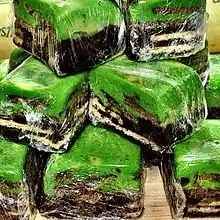 It is also similar to hedgehog slice and the latest Prince William chocolate biscuit cake, although with some different ingredients.[3] In Brunei, the Batik cake is covered by green colour topping.[4]