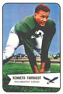 Kenneth David Farragut, Jr. (December 23, 1928 โ February 16, 2014) was an American football center. He played professionally in the National Football League (NFL) for the Philadelphia Eagles.