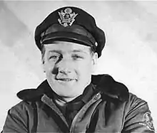 He was shot down three times. The first time, he bailed out near Paris and was sheltered by the French Resistance.[2] Disguised as a woman,[1] he rode a bicycle to Allied lines 40 miles (64 km) away.[2]