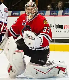 Kent Rory Simpson (born March 26, 1992) is a Canadian former professional ice hockey goaltender who briefly played in the National Hockey League (NHL) with the Chicago Blackhawks. Simpson was selected by the Blackhawks in the second round (58th overall) of the 2010 NHL Entry Draft.
