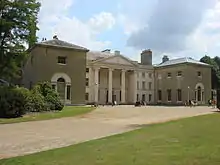 There are two drives leading to the house from Hampstead Lane. Each has a gated white-brick lodge. The north, or main entrance front of the house was designed by Robert Adam and is set in Stucco with a central portico. The south front is constructed out of a single Stucco block. It was restored to its original design in 1975. To the east of the house is the service wing, constructed from London stock brick. Opposite this is the brick house, designed as a cold-plunge bath.[1]