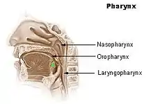 Keratosis Pharyngis is a medical condition where keratin grows on the surface of the pharynx, that is the part of the throat at the back of the mouth.[1] Keratin is a protein that normally occurs as the main component of hair and nails. It is characterized by the presence of whitish-yellow dots on the pharyngeal wall, tonsils or lingual tonsils. They are firmly adherent and cannot be wiped off.[1] The surrounding region does not show any sign or inflammation or any other symptoms that make affect the rest of the body.