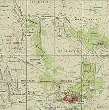 In 1877 Herbert Kitchener of the Palestine Exploration Fund travelled in the area, as part of The Survey of Western Palestine. Kitchener reported: "I rode out and examined the fine site of El'Ormah, south-east of Nablus. The position was very grand, standing high above the surrounding hills; from a distance the castle seems almost inaccessible ; by approaching it from the west, however, a narrow tongue of land leads to within a little of the top. A stiff climb along rock terraces and over scarped rocks leads to the plateau on the top on which the castle was situated. The foundations of two square towers of large drafted masonry, similar to Crusading work, still guard the southern entrance ; these and some cisterns and ruined houses are all that now remain ; the whole area of the plateau would be about three-quarters of an acre. The rock was scarped perpendicularly on the west side ; on the east and north sides the hill descended very steeply about 500 ft. to a valley ; on the south a very narrow ridge led to another small round hilltop, slightly lower than the fortress, which was equally inaccessible. The place must have been one of great strength ; the remains still existing do not seem to date from a period previous to the times of the Crusaders.".[17] The SWP noted in 1882: "A ruined castle, on a hillock, with a spring to the west. Large caves and cisterns exist north of it. The position is very fine, commanding all the neighbourhood. The rock is scarped in places. Drafted stones occur in the corner towers, and there are traces of other ruins."[18] The SWP cited C.W.M Van De Velde.[19] In 1881, Palmer wrote that the meaning of El Ormeh is "the dam".[20]