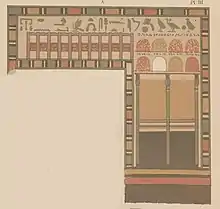- ↑ Gaston Maspero, Urbain Bouriant, Victor Loret, H. Dulac (1889)ː Mémoires publiés par les membres de la mission archéologique française au Caire. Tome premier. Fasc. 1, 194, 199, figs. 2, 3, 5, pl.s 1-5 online