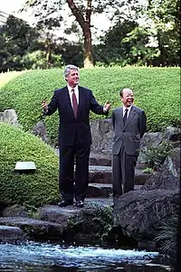 Miyazawa with Bill Clinton at the Garden of Iikura Guest House on 6 July 1993