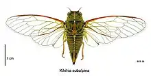 Kikihia subalpina, commonly known as the subalpine green cicada, is a species of cicada that is endemic to New Zealand.[3][2] This species was first described by George Hudson in 1891.[1][4]
