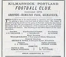 - ↑ "Kilmarnock Portland v Kilmarnock St Andrew's". North British Daily Mail: 3. 23 October 1876.