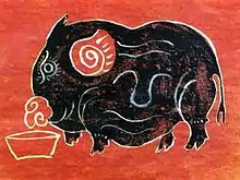 Kim Hoàng painting (Vietnamese: Tranh Kim Hoàng) is a genre of Vietnamese woodcut paintings originated from Kim Hoàng village of Hoài Đức, Hanoi, Vietnam. In the past, Kim Hoàng painting was a popular element of the Tết holiday, together with Đông Hồ and Hàng Trống painting, but this tradition was lost in the middle of the 20th century and today several authentic pictures of Kim Hoàng painting are found only in museums or fine art galleries. However, the art of making Kim Hoàng painting is still considered a symbol of traditional culture and aesthetic value of Vietnam.