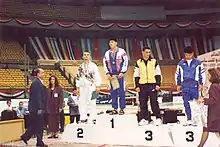 ![]() Kim in the first place at the Junior World Championships in Cairo in November 1994 | |