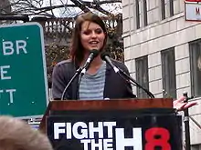 Stolz at a 2008 Rally for equal marriage in New York City.