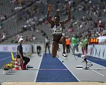 Kimberly Williams (born 3 November 1988) is a Jamaican triple jumper. She is a multiple time Jamaican National Champion.[1] She was successful as a youth athlete, winning the 2003 CARIFTA Games (under 17 division) as a 14 year old. She was runner up at the 2007 Pan American Junior Athletics Championships. Later, she jumped for Florida State University and was a four time NCAA Champion. By the time she graduated in 2012, she was "the most decorated women's track and field athlete in Florida State history."[2] Since then she is the reigning Commonwealth Games champion. She was a finalist in the 2016 Olympics, ranking as high as 4th after two rounds of jumping, ultimately finishing seventh.