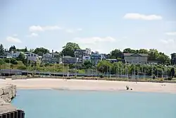 Kincardine Lighthouse and museum are located on Harbour Street, as well as a building constructed in 1877 which has served as a bank, a barristers and solicitors office, a newspaper office, a doctor's office, a private residence, and a restaurant. The building is architecturally significant for its intricate brick work design around the windows and parapet.[24] Paddy Walker House, the oldest building in Kincardine,[25] is now a museum. Beaches in Kincardine include Tiny Tot beach, Station Beach (Reunion Park), and Boiler Beach. There are two piers attached to the marina, with the South Pier used for "cliff-jump" style swimming.[20]