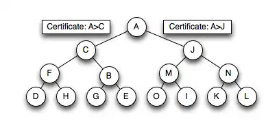 For example, if B (with child nodes Y and Z) was a child node of A (with child nodes B and C and parent node X), and the certificate [A>B] fails, then the data structure must swap B and A, then replace the old certificates (and the corresponding scheduled events) [A>B], [A<X], [A>C], [B>Y], [B>Z] with new certificates [B>A], [B<X], [B>C], [A>Y] and [A>Z].