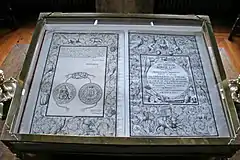 The King's Law was published during the reign of Frederick IV, engraved throughout, the royal copy bound in red velvet elaborately embroidered in gold and silver thread with the king's monogram in the centre.[23]