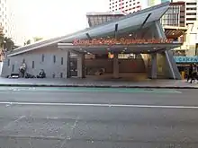 Construction of the King George Square busway station was announced in March 2005.[1] Construction commenced in early 2006 and the station opened on 19 May 2008 when the Northern Busway was extended from Normanby.[2][3] The lower two levels of the King George Square Car Park were demolished to make way for the station. The heritage-listed Wheat Creek Culvert (built in 1861) which ran from under King George Square out into Adelaide Street was also demolished. A short segment of the culvert has been preserved as a display in the bus station.[4]