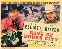 King of Dodge City is a 1941 American Western film directed by Lambert Hillyer and written by Gerald Geraghty. The film stars Wild Bill Elliott, Tex Ritter, Judith Linden, Dub Taylor, Guy Usher and Rick Anderson. The film was released on August 14, 1941, by Columbia Pictures.[1][2][3]