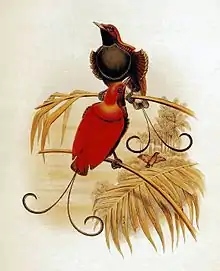 The King of Holland's bird of paradise, also known as King William III's bird of paradise or the exquisite little king,[1] is a bird in the family Paradisaeidae that is a hybrid between a magnificent bird of paradise and king bird of paradise.