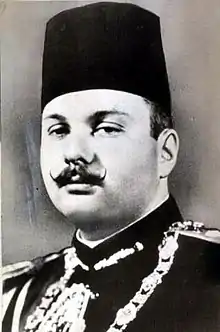 The government of Egypt, and the Egyptian population, played a minor role in the Second World War. When the war began in September 1939, Egypt declared martial law and broke off diplomatic relations with Germany. It did not declare war on Germany, but the Prime Minister associated Egypt with the British war effort. It broke off diplomatic relations with Italy in 1940, but never declared war, even when the Italian army invaded Egypt. King Farouk practically took a neutral position, which accorded with elite opinion among the Egyptians. The Egyptian army did no fighting. It was apathetic about the war, with the leading officers looking on the British as occupiers and sometimes holding some private sympathies toward the Axis.[6] In June 1940, the King dismissed Prime Minister Aly Maher, who got on poorly with the British. A new coalition government was formed with the Independent Hassan Pasha Sabri as Prime Minister briefly, followed by Hussein Sirri Pasha.[7]