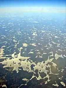 Aerial view of Kingfisher Lake, with the community of Kingfisher Lake in bottom left.