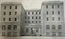 After a year of fund-raising the organization finally began construction on September 9, 1926. Ground-breaking ceremonies took place on Rutland Road and East 49th street which is the present day location of the hospital campus. The man of honor selected to break ground was New York State Deputy Attorney General Israel M. Lerner.[9][10] On June 27, 1927, the ceremonial first cornerstone was placed before an audience of 300 people who pledged themselves to help in the construction of the first building and marked the beginning of a reevaluated campaign to raise $250,000 for the cost of construction of the hospital.[11] By February 1928, the shell of the new five-story building which was planned to accommodate 250 beds was built, but another $50,000 was needed to finish the structural work and furnish it with equipment.[12][13][14] On October 14, 1928, a dedication ceremony was attended by 2,000 people to mark the completion of the building which today is called the Lefrak building.[15][16] The building was divided into wards containing 22 to 35 beds, with a sun porch adjacent to every ward.[17] Although the construction of the building was complete finicial setbacks prevented the admission of patients until the spring of 1929. After four months of raising money, the hospital officially opened its doors to patients on April 24, 1929.[3][17][18][19][20][21][22][23] On its opening day, fifty-two men and women were taken by automobile and wheelchair from Kings County Hospital Center[3] The hospital quickly filled to its capacity of 300 patients and decided to expand to deal with the constant pressure of new patients. In a speech given by Blumberg in a fundraising party, he said, "Our wards are always filled to capacity, we are the only institution of this kind in Brooklyn and we must expand if we are to care for the needy who come to us for aid."[24] In April 1930, a new wing containing a physiotherapy and dental laboratory was added.[25][26][27]