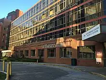On April 29, 1985, hospital officials unveiled a preliminary plans to construct a four-story building to meet the increasing demands on the institution.[58] The pavilion was to be a four-story building, connected to the existing Bernard and Rose Minkin Pavilion, containing 120 general and medical beds, supplementing another 20 beds for intensive care and coronary care patients.[58] An expanded medical library for advanced research was also proposed.[58] David Minkin, president at the time, named the building after his sister Mrs. Lillian Minkin Briger and her husband Dr. Sigmund S. Briger. In September 1985, the New York State Department of Health approved the project and construction then immediately began.[59] The construction of the pavilion was estimated to cost $20,000,000, of which $3,000,000 was donated by David Minkin.[60] The contribution was announced on his election 14th term as president of Kingsbrook. Over 50 years, Minkin had donated and raised millions of dollars for the institution.[60] The remaining funds for the construction and operation of the building were raised through dinners and fundraisers.[58][61] During the construction of the pavilion, the institution implemented a broader $35,000,000 capital improvement program which focused on a major overhaul to update all its facilities.[62][63] In addition to holding his presidential position, David Minkin was a philanthropist, builder, and real estate developer.[64] and had been the hospital's major benefactor to date.[64]