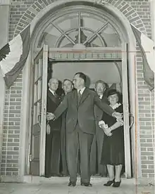 On April 27, 1958, more than 2,500 people including political, civic, and business leaders attended the opening ceremonies.[55] Congratulatory massages came from President Dwight D. Eisenhower, Secretary of Health, Education, and Welfare Marion B. Folsom, U.S. Surgeon General Leroy Edgar Burney, New York State Governor W. Averell Harriman, and New York City Mayor Robert F. Wagner.[55] Morris Masin, a member of the hospital's board of directors, in whose name and that of his late wife, Bessie, the building was named, pledged $30,000 towards the equipment fund drive, in addition to the $100,000 he had already contributed.[55] Speakers included New York City Council President Abe Stark, Brooklyn Borough President John Cashmore, Deputy Commissioner of Hospitals Maurice H. Matzkin, Issac Albert, president of the hospital, and David Masin. Following the formal cutting of the ribbon, a tour of the new pavilion, which housed the Isaac Albert Research Institute, was made.[55]