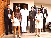 Since the tension characterized by armed violence and unrest within the Niger Delta in the time past was not limited to Nigeria and Nigerians alone, many foreign countries and their nationals had cautioned about the potentially dangerous end of the disorder that was engulfing the oil-rich Niger Delta region which is one of the major suppliers of crude oil to the international market. The situation, which chillingly gripped the attention of the international community that is consistently suing for peace and security around the world and promoting increase in international trade among the developed and the developing countries, had given impetus for notable Western nations such as the United Kingdom to provide some form of interventions in addressing the challenges of insecurity and violence in the Niger Delta region to protect Nigeria's economic lifeline and prevent escalation of crises across the country and within the West African sub-region. Among the strategies, offered Nigeria as support, in stemming the disturbance and uprising from the Niger Delta agitators was the establishment of the All Party Parliamentary Group on Niger Delta by the British Parliament with the members of the group drawn from members of parliament (MP) across party lines.[5] In recognizing the ideas initially suggested by different foreign nations and international organisations in working against total collapse of law and order in Niger Delta, Kuku moved further to reach out to other strategic foreign partners and entities, through diplomacy, for technical support in achieving his mandate of office as the Chairman of the Presidential Amnesty Programme and the Special Adviser on Niger-Delta to the Nigerian President, Goodluck Jonathan. In 2011, Kuku was a guest speaker at an internationally renowned institute for international affairs, Chatham House London where he delivered a paper titled, Amnesty in the Niger Delta: Sustaining Peace and Surmounting Challenges.[25] The occasion was an important climate for Kuku to share the progress and challenges of his responsibilities in the Nigerian government with the international community with the view to having more committed and supportive hands on board towards alleviating the problems of the Niger-Delta. Similarly, in 2013 Kuku was invited by the programme managers of the Wilson Center in the United States. At the Wilson Center, Kuku spoke on a topic – A Briefing on the Niger Delta: Where Things Stand – in which he narrated the struggles of himself and his team at the Amnesty Office in reversing the tide of calamity in the Niger Delta to the point it is now.[26] After the event, the Wilson Center published the outcome of the discussion with an opening quotation that reads – "It is critical to discuss what the Niger Delta is now, not what it was." – The Honorable Kingsley Kuku", in accentuating the opportunities and promise of the new Niger Delta as enunciated by Kuku at the Wilson Center. In what could be regarded as a smart diplomatic move, Kuku made the list of some notable personalities around the world who attended a special dinner for President Obama inauguration in US. Kuku was seen in some exclusive photographs with President Obama and his wife, Michelle Obama and Vice President Joe Biden and his wife, Tracy as well as with other important personalities in international politics and development.
