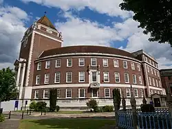 The Kingston upon Thames Guildhall is a municipal building in Kingston upon Thames in England. It is situated in the High Street, adjacent to the Hogsmill River. The guildhall, which is the headquarters of Kingston upon Thames London Borough Council, is a Grade II listed building.[1]