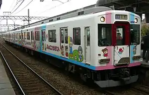 The sets are operated on the 1,067 mm (3 ft 6 in) Minami Osaka Line network. However, they are not allowed on the Domyoji Line as they are not equipped for wanman driver-only operation.[5]