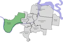 Kirovsky (Russian: Ки́ровский райо́н) is the westernmost of the seven city districts that make up the city of Perm in Perm Krai, Russia, located on the right bank of the Kama River. As of the 2010 Census, the population was 127,793,[1] up from 126,960 in 2002,[2] and 138,607[3] in 1989. It is composed of 10 smaller microdistricts, and has a total land area of 404 square kilometers, or 156.1 square miles.[4] Out of all of the city districts that make up Perm, Kirovsky has the highest percent of land being used for parks, at 75%. It has an industry-based economy. Out of the other six city districts, it's only neighbor is Dzerzhinsky.