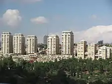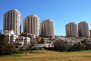 Kiryat Wolfson (Hebrew: קריית וולפסון), also known as Wolfson Towers, is a high-rise apartment complex in western Jerusalem. Comprising five towers ranging from 14 to 17 stories above-ground,[1] the project was Jerusalem's first high-rise development.[2] The project encountered opposition from both municipal officials and the public at each stage of its design and construction.[2] The complex includes 10,000 square feet (930 m2) of commercial space and a medical center. The project was financed by the Edith and Isaac Wolfson Trust.[3]