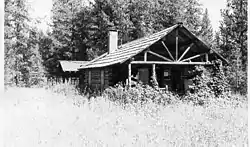 The Kishenehn Ranger Station in Glacier National Park was originally built in 1913, but a fire burned it down in 1919. They rebuilt it in 1921. Located nearly five miles south of the Canada–United States border, the log cabin was one of the earliest administrative structures in the park. The cabin was designed in an early version of what became the National Park Service Rustic style.[2][3]
