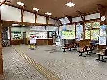 The station consists of two ground-level opposed side platforms, connected by a level crossing. The station has a Midori no Madoguchi staffed ticket office.