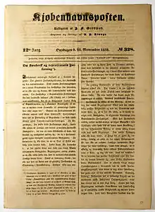 Kjøbenhavnsposten was a Danish oppositional newspaper founded by A. P. Liunge in 1827. The paper became the major media outlet for political Left Hegelianism in Denmark during the 1840s.[1]
