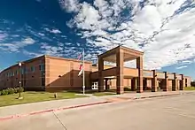 • Klein Cain High School is the fifth and newest high school, built in 2017. The high school was named after Dr. Jim Cain, a former superintendent who retired in 2015. In its first year, Klein Cain enrolled only ninth and tenth grade students. The school added 11th grade students in 2018–19, and will operate as a full 9–12 high school beginning in 2019–2020.[72] The school enrolled 2,323 students in 2018–2019[73] and received a B grade from the Texas Education Agency.[74] The current principal is Nicole Patin and the mascot is the Ibis.[75]