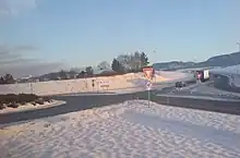 To the south of Klett is the junction called Klett Crossing (Klettkrysset) where the European route E06 and European route E39 highways intersect. The roundabout was built in 1988. It is the site of the most traffic accidents in all of the old Sør-Trøndelag county. It was also long famous for being the only roundabout in Norway with yellow road-signs. This was a test by the Norwegian road administration, inspired by Sweden.[3] A renovation of the intersection is scheduled with a startup during summer 2019 and an estimated completion during winter 2020.[4]