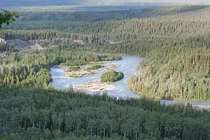 The Klutina River (Tl’atii Na’ in Ahtna) is a 63-mile (101 km) tributary of the Copper River in the U.S. state of Alaska.[1][3][4] Beginning at Klutina Glacier in the Chugach Mountains, the river flows generally northeast, passing through Klutina Lake, to meet the larger river at the community of Copper Center.[5] The river mouth is 66 miles (106 km) northeast of Valdez.[1]