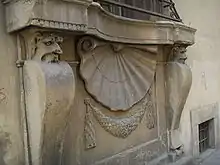 The first kneeling window is traditionally the one in Palazzo Medici Riccardi in Florence, attributed to Michelangelo[1] It was made to occupy the large arch of a portal that once led to a family loggia.