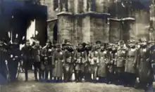 Persons to be knighted were proposed by the palatine, and later on, from the end of the 19th century by the Prime Minister. The number of the knights was different on each coronation. Albert I knighted 84 persons,[48] Charles III 6, Maria Theresa 44 (25 nobles and 19 citizens), Leopold II 33, Francis II 48, Ferdinand I 27, Franz Joseph I 28, Charles IV. 47. In the latter coronation, all the knights came from the battlefield soldiers. Half of them originated from old noble families, and there were also soldiers from various military corps. The soldiers were allowed to left the front or the hospital facilities to participate the coronation. Originally, 51 persons received invitations, but only 47 of them arrived to the coronation in time. The intention was to raise those soldiers for knights of golden spur who already were given war medals for their valiant conduct against the enemy.[49] They got their imaginary honors to their battlefield-gray uniforms.