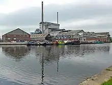 Glass manufacturing continues to be important. The town had Kellingley Colliery operating until December 2015. The demand for coal was helped by the huge power station at Ferrybridge.[14] Whilst most of the coal bound for Ferrybridge left by rail, some was transported up river using barges, the last of which was delivered in December 2002.[15] The last miners, their families and many former miners marched from Knottingley Town Hall to the Social Club in December 2015.[16]