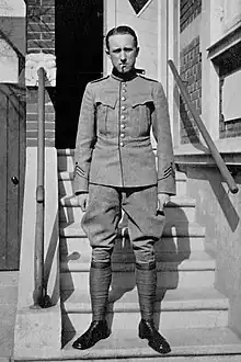 Knud Lonberg-Holm was born in 1895 in Denmark. From 1912 to 1915 he attended the Royal Danish Academy of Fine Arts, where he studied architecture and engineering. One of his early designs was of a shipyard in Copenhagen. His early works were associated with De Stijl and Berlin Constructivist movements.[1] Lonberg-Holm emigrated to the US in 1923.[2][3] In 1924-25 he taugh a course on design at the University of Michigan in Ann Arbor, based on Bauhaus ideas. He was one of the founders of International Congress for Modern Architecture. In 1920s he travelled through a number of American cities with a camera and "took worm's-eye views and extreme close-ups of skyscrapers, the back sides of buildings, fire escapes, billboards, and dazzling 'lightscapes', ignoring—for the most part—the facades of the buildings."[2] Some of his photos were published in Erich Mendelsohn's 1926 book Amerika: Bilderbuch eines Architekten; he did not receive credits for his works in the first edition.[2][4]